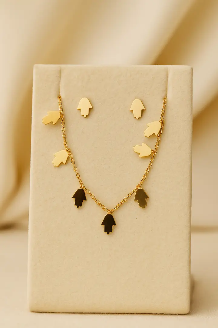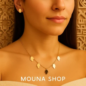تصميم أنثوي ناعم يوحي بمدا بروز الخميسة في تقليد المغربية ومصنوعة بمعدن لامع عالي الجودة